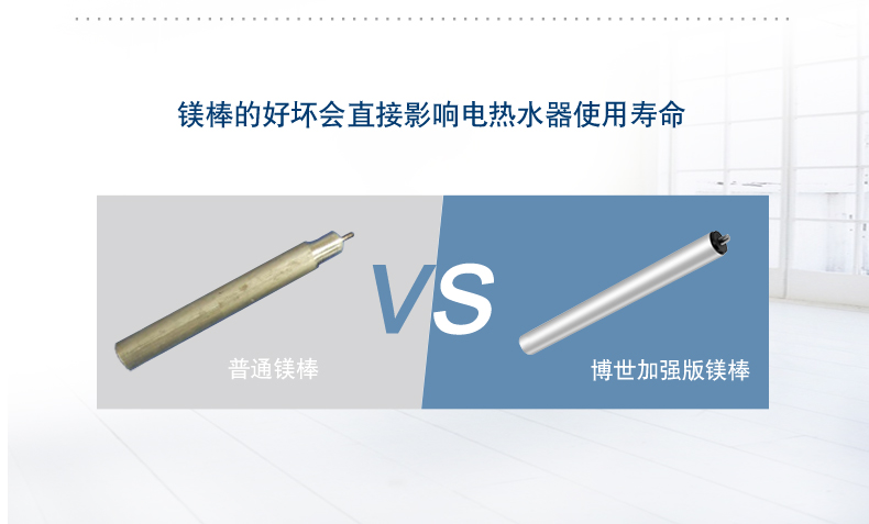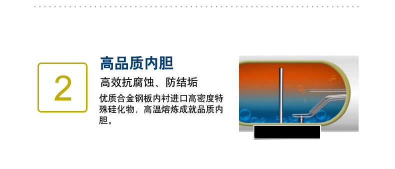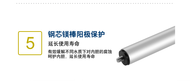 鋼芯強力陽極棒,有效緩解不同水質(zhì)下對內(nèi)膽的腐蝕,大大延長熱水器的使用壽命。