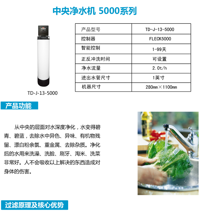 全屋中央凈水機有效去除水中的異色、異味;進一步濾除水中微小雜質(zhì)、膠狀體;去除水中的漂白粉余氯、農(nóng)藥、重金屬;保留對人體有益的礦物質(zhì)。使水變得碧清、碧藍,去除對人體有害的物質(zhì)。