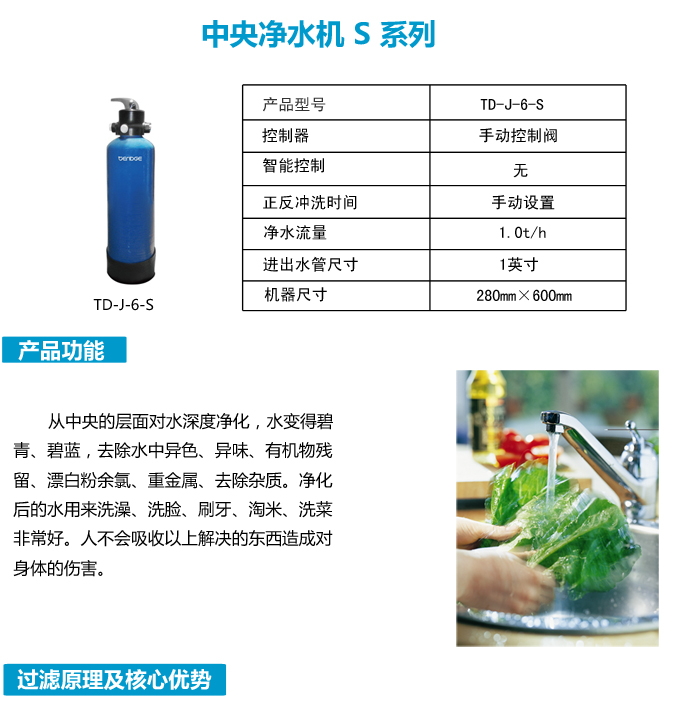手動(dòng)中央凈水機(jī)有效去除水中的異色、異味;進(jìn)一步濾除水中微小雜質(zhì)、膠狀體;去除水中的漂白粉余氯、農(nóng)藥、重金屬;保留對(duì)人體有益的礦物質(zhì)。使水變得碧清、碧藍(lán),去除對(duì)人體有害的物質(zhì)。